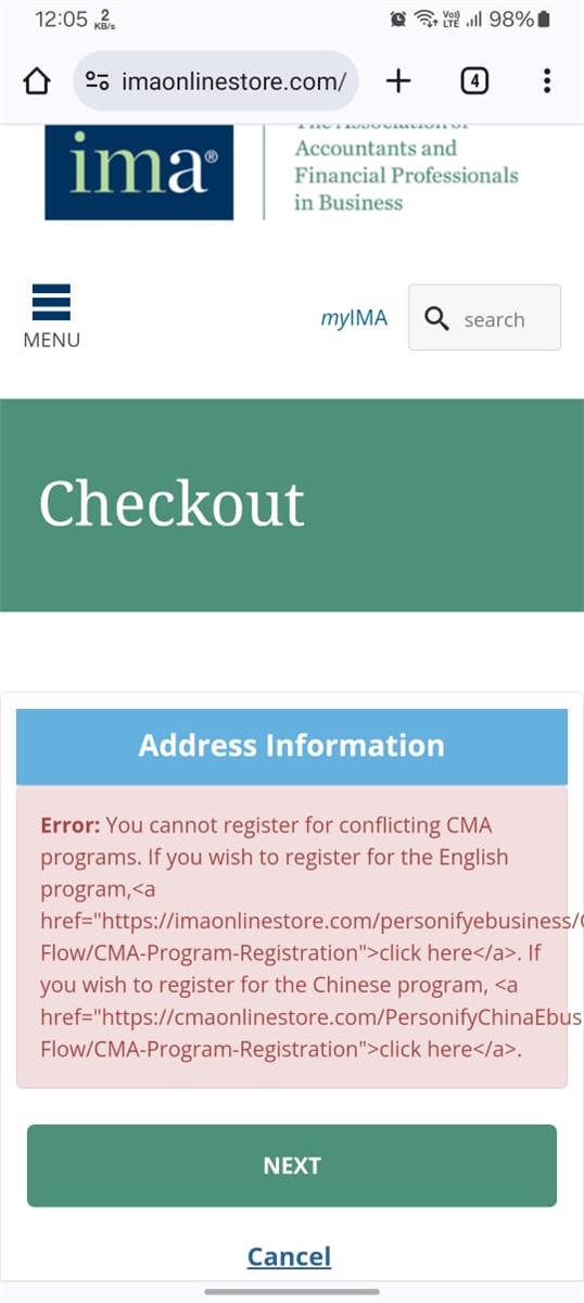 Hii, Shubham Soma here CMA aspirant I have cleared my part 2 exam in last may and now I want to appear for my CMA part 1 exam in sept - Oct window but I am unable to do so plz help below is the attached screenshot just check into it and let me know asap.
